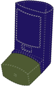 This example is a UK registration in Classes 5 and 10 in respect of inhalers. The mark is actually less of a 3D shape, but covers more the colour combination of blue/violet and green. This is indicated by the dotted lines outlining the product shape. However, it would be interesting to see the validity of such a registration, as the CJEU has previously stated in case law that it is irrelevant whether the mark is regarded as a position, figurative or colour mark; it relates to the application of three dimensional elements to the surface of a product and can be assessed as such alongside any evidence of actual genuine use.