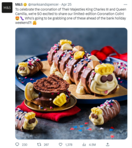 M&S scheint nicht auf die Anzeige reagiert zu haben, obwohl sie eine limitierte Ausgabe von Coronation Colin herausgebracht haben, also halten Sie Ausschau danach!