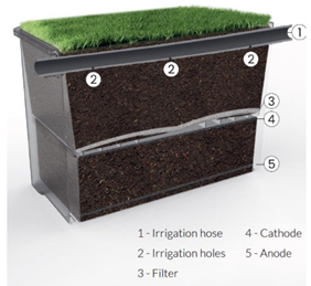 As can be seen from the Figure above, the Bioo Panel differed from the claimed invention, as it included two compartments (rather than one) wherein the upper compartment contained the plant and its roots and the lower compartment contained the anode and microorganisms.